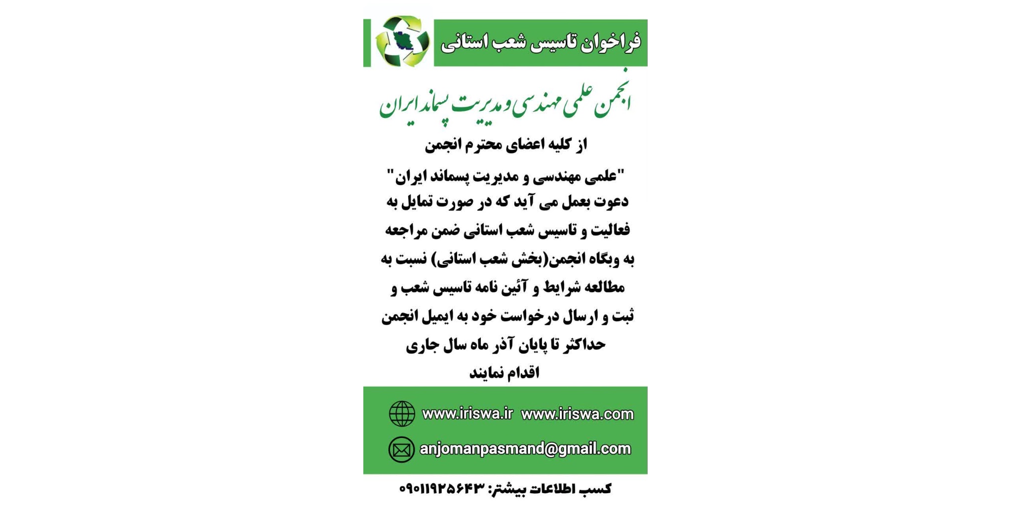 فراخوان تاسیس شعب استانی انجمن علمی مهندسی و مدیریت پسماند ایران