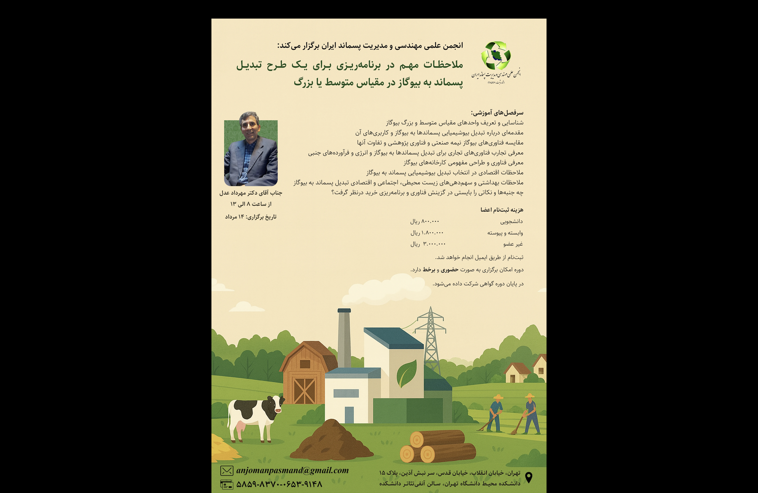 دوره آموزشی ملاحظات مهم در برنامه ریزی برای بک طرح تبدیل پسماند به بیوگاز در مقیاس متوسط یا بزرگ